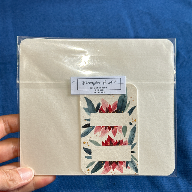 Carte de Vœux Poinsettia aquarelle originale + étiquette cadeau